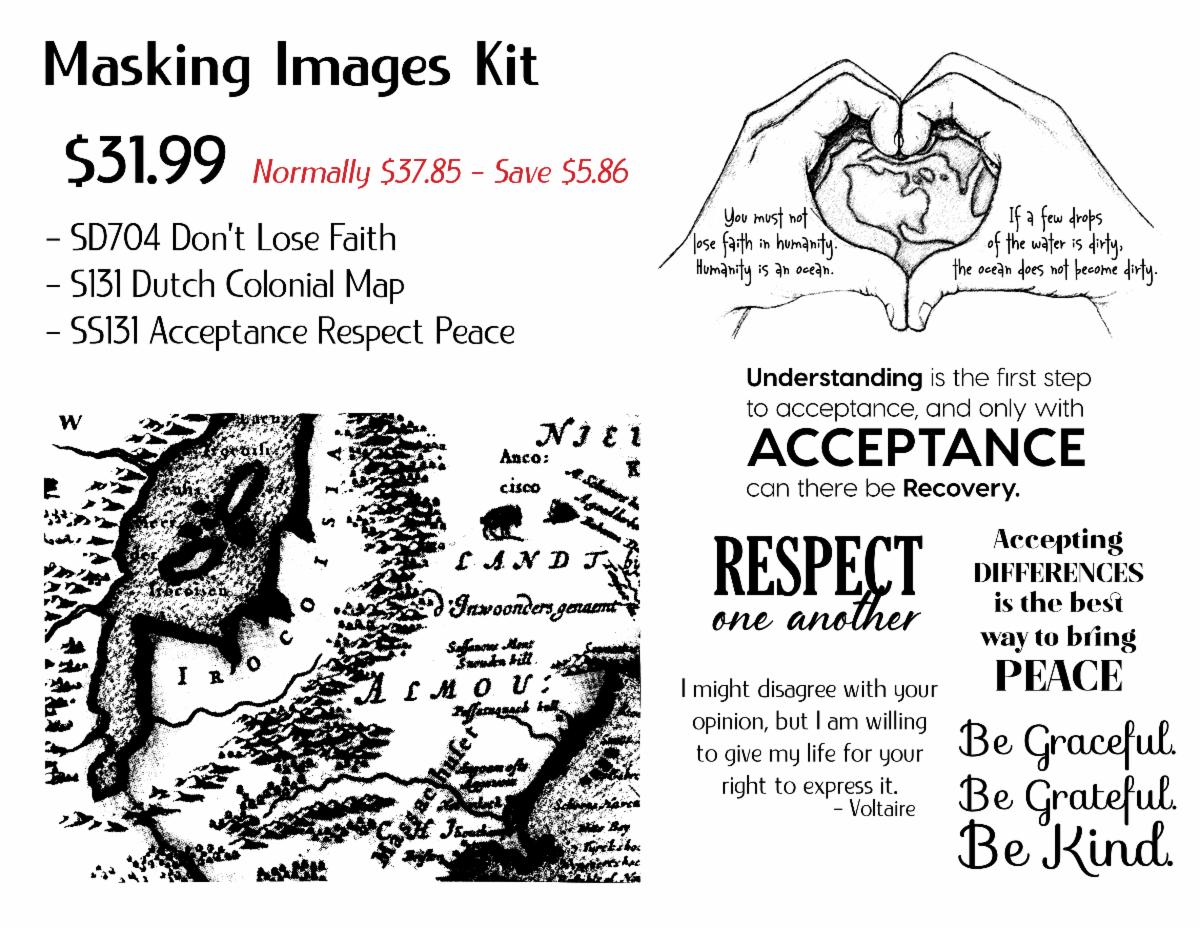 But when I came out with the SS131 Acceptance, Respect, Peace Set, I couldn't help but think that these things were a match that couldn't be passed up. The only problem was that I wanted to use the sentiments without the embedded "You must not lose faith in humanity..." sentiment.