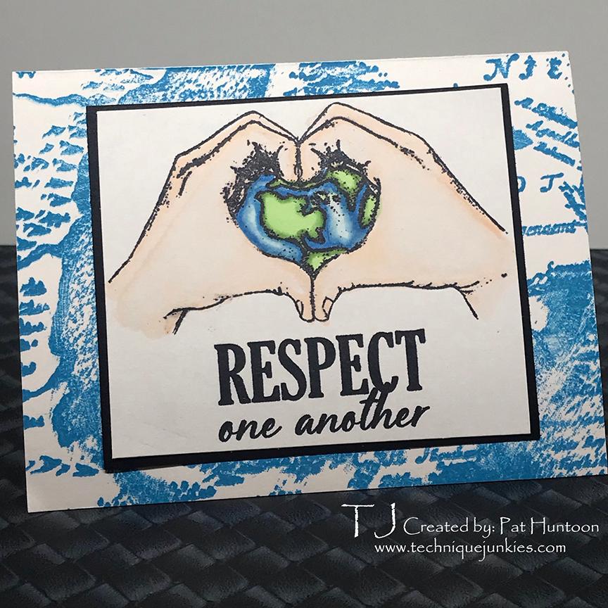 You may also notice the blue map in the background. That is a stamp called S131 Dutch Colonial Map. That stamp has never been released by Technique Junkies, even though it has been in my line. I think it is amazing on this card, so now I am releasing it for you! What I like about this is how it is detailed enough to add great interest to a piece, but non-specific enough to not have to be from anywhere specific. At least, that is how I see it!